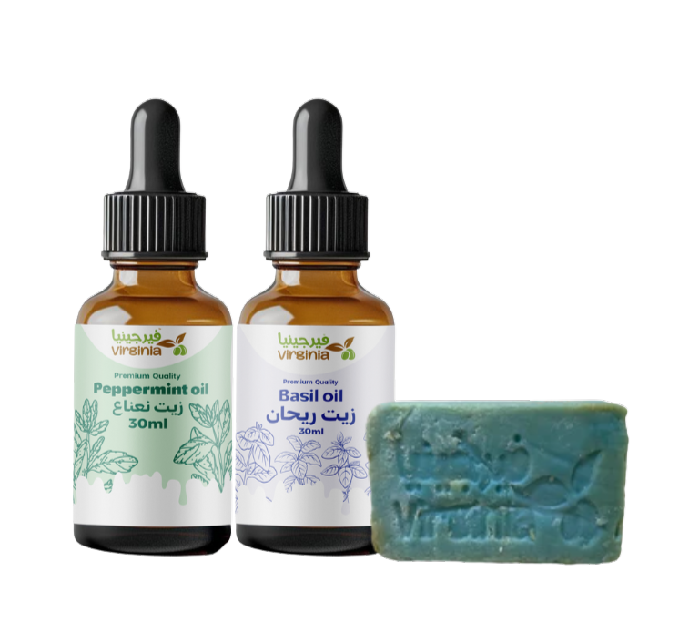 • 🌿 مجموعة العنايه ب حب الشباب (صابونة النعناع + زيت النعناع + زيت الريحان)